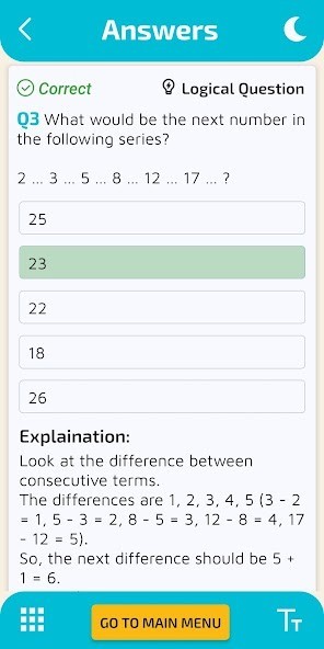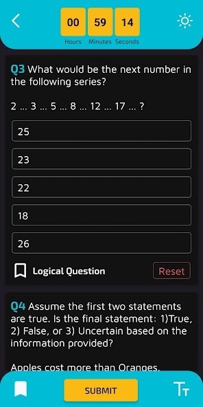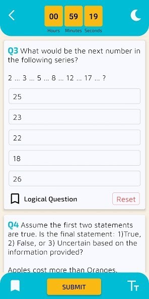 This app has a bookmark option that allows you to save questions that you are unsure about or want to try again later during the test. This helps in time management, which is an important consideration during aptitude.
