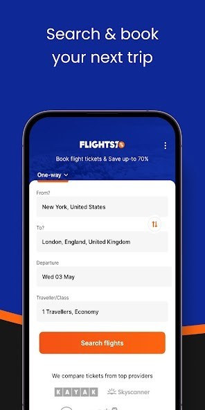 Download the Cheap Flights・Flights70 app and save on your next flight booking. Get the best air tickets price, every time with a single click.