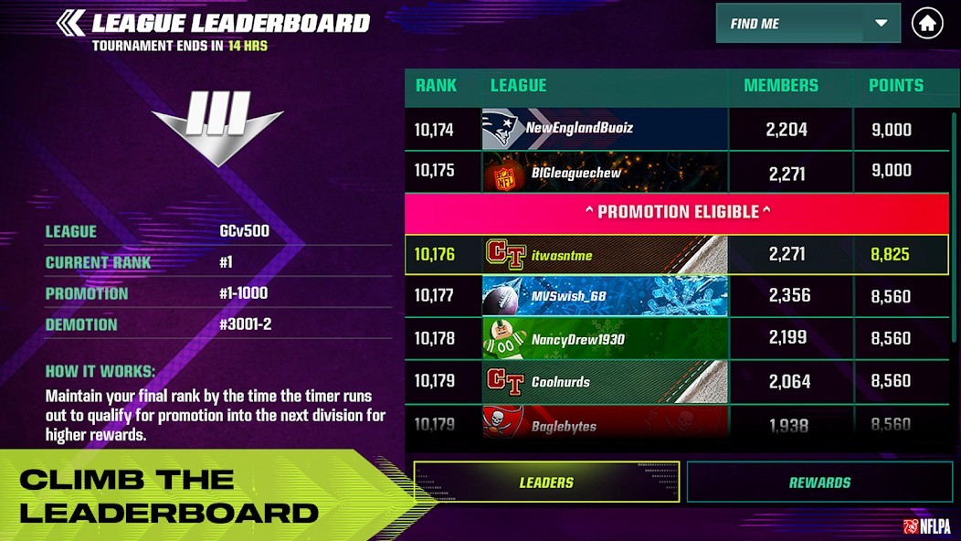- Complete challenges and upgrade your NFL team to climb the leaderboards!