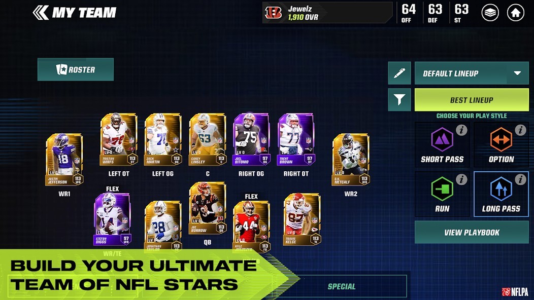 - Build a dynamic roster of NFL Football Superstars that fits your playstyle