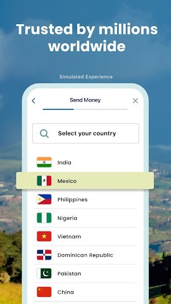 • Send money transfer to: Philippines, India, Vietnam, México, Dominican Republic, Nigeria, Pakistan, China, Ghana, Kenya, Colombia, Brazil, Guatemala, El Salvador, Honduras, Nicaragua, Costa Rica, Panamá, Ecuador, Peru, Bangladesh, Indonesia, Korea, Nepal, Thailand and more