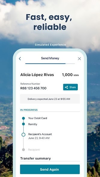 More money makes it home to loved ones with Remitly’s great rates, special offers, and no hidden fees. Use this easy money transfer app and your mobile phone to send money.Transfer money using your bank account, credit card, debit card, with your mobile phone. Download our secure money transfer app and send money to banks and 435,000+ cash pickup locations worldwide.