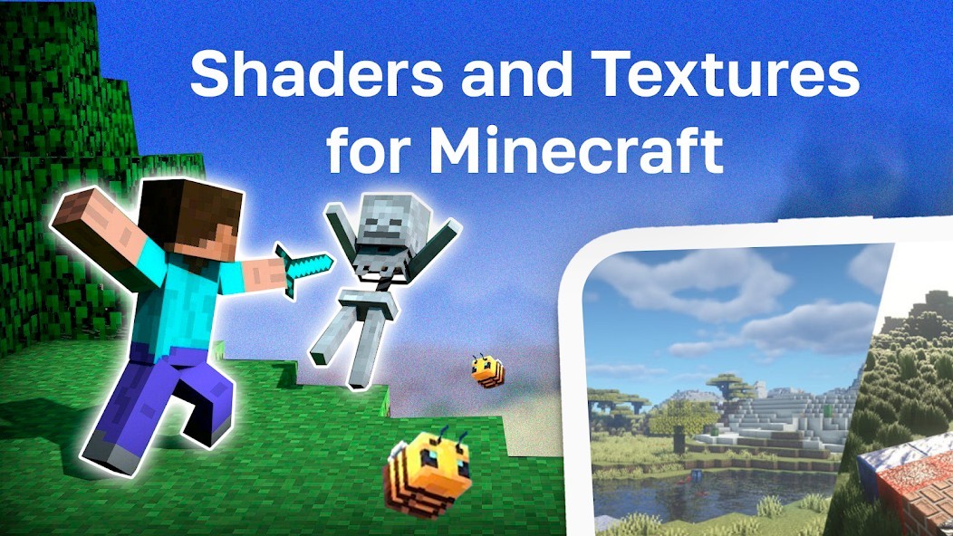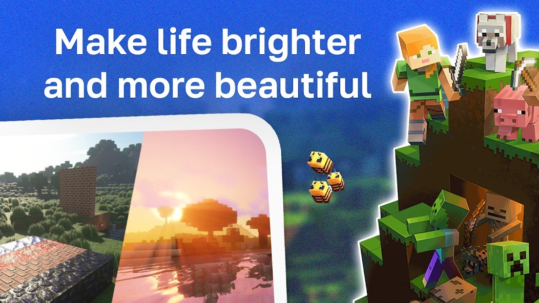 In this application Shaders and textures for Minecraft we have collected for you the best texture pack and shader pack that will make your life in Minecraft Pocket Edition much more beautiful and brighter. The universe of your craft maps will absolutely change its appearance, and turn into a completely different game. Packs Mod Textures and Shaders for Minecraft PE uses very realistic effects for the graphic component in survive mode.Realistic packs mods and addons that take the graphics of the MCPE Bedrock game to a completely different level are in high demand in the addon market. Realistic Addon / Mod Shaders and Textures for Minecraft uses updated technologies, with which each texture has become 10 times more detailed. Also, this application supports absolutely any device, so do not worry about FPS in survive mode.